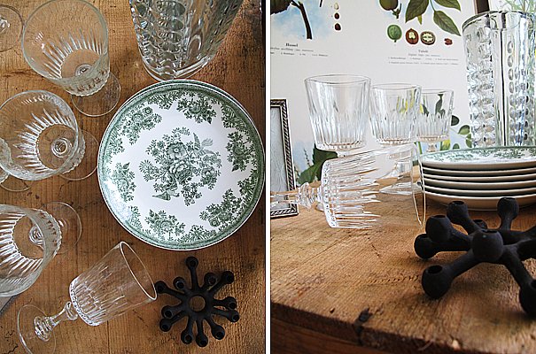 Assietterna är Gustavsbergs Fasan-serie, 6 för 60 kronor känns ju överkomligt. Likaså vinglasen, 6 för 45 kronor. Ingen aning om vad de är dock – någon annan som har koll? På bilden även en fin trälåda som jag slog till på, och ljusstaken jag nämnde häromdagen.