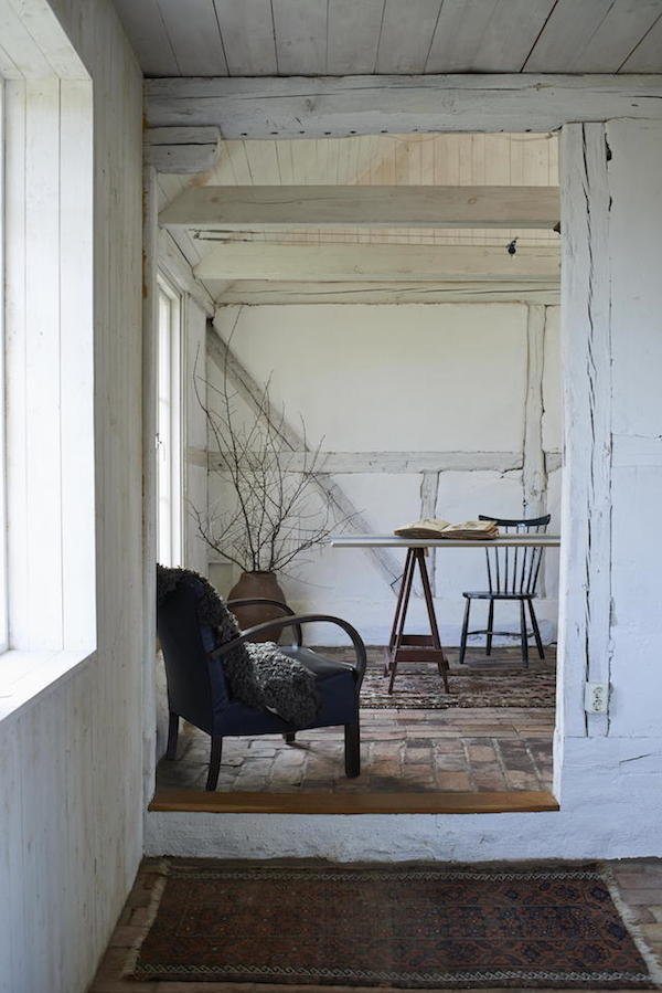 Det är detaljerna som gör det svarta fönsterbågar kräver lite mod, men med stora fönster blir det oerhört effektfullt. En svart sladd till taklampan och den lilla svartfotade bordslampan på piedestalen sätter små utropstecken i rummet.